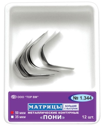 Контурные металлические матрицы Пони 1.344 применяются при реставрациях в тех случаях, когда коронковая часть зуба сильно разрушена. Благодаря специально подобранной длине, они идеально охватывают зуб.