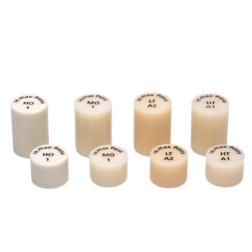 Для производства заготовок IPS e.max Press HT A 3,5 применяется уникальная стеклокерамика высокой прочности на основе дисиликата лития. Их использование позволяет отказаться от металла, дополнительные красители позволяют получить цвет и блеск здорового дентина.
