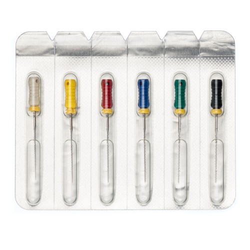 Рабочая часть Н-файлов № 15-40 сделана из цельного куска нержавеющей стали по технологии фрезерования и имеет заостренные спиралевидные насечки. Файл удерживается за рукоятку из пластика, глубина его погружения четко контролируется стоппером из силикона.