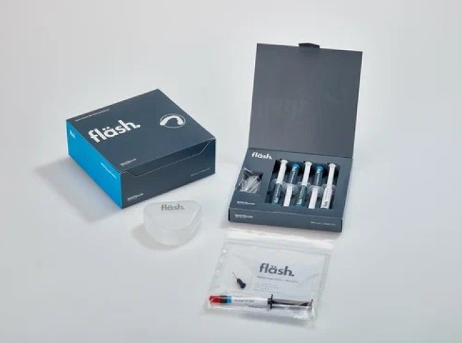 Система домашнего отбеливания (набор для отбеливания и пластины для создания капы). Гель домашний отбеливающий 16% CР З мл из системы профессионального отбеливания зубов Флэш - это готовый к применению гель для отбеливания потемневших здоровых зубов, предназначенный для использования в индивидуальных каппах. Отбеливание можно проводить на ночь или в течение 3 часов в течение дня. Процедуру отбеливания следует повторять в течение 5–10 дней. Перекись карбамида: 16% Минимальное время использования: 1 час. Рекомендуемое время использования: 3 часа или на ночь. Лучший результат для рег. отбеливания: 4-8 процедур. Показания: изменение цвета от незначительного до обычного, чувствительные зубы. Как добиться максимальных результатов: Почистите зубы зубной нитью. Достаньте из коробки один шприц и снимите колпачок с дозирующего наконечника. Капните небольшую каплю геля домашнего отбеливающего в каждое отделение для зубов. Поместите заполненные каппы на зубы. Один шприц заполняет примерно 6–8 капп. После отбеливания снимите каппы, промойте и сотрите гель с зубов и десен. Промойте каппы холодной водой и аккуратно очистите зубной щеткой. В течение как минимум 2 часов после отбеливания воздержитесь от чая, кофе, красного вина, сигарет и т.д., т.к. это снизит эффективность отбеливания. Чтобы реминерализовать зубы и избежать повышенной чувствительности, используйте мусс после отбеливания Флэш. Носите в очищенных каппах примерно через 10–15 минут после процедуры отбеливания зубов. Отбеливание можно проводить на ночь или в течение 3 часов в течение дня. Процедуру отбеливания следует повторять в течение 5–10 дней. Перекись карбамида: 16% Минимальное время использования: 1 час. Рекомендуемое время использования: 3 часа или на ночь. Лучший результат для рег. отбеливания: 4-8 процедур. Показания: изменение цвета от незначительного до обычного, чувствительные зубы. Комплект: Отбеливающий гель 16% CP (3 мл) - 4 шт; Мусс для нанесения после отбеливания (3 мл) - 1 шт; Контейнер для хранения капп - 1 шт; Пластины для изготовления каппы – 2шт.