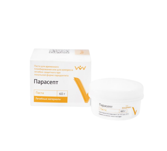 В составе пасты Парасепт содержатся специальные волокна, что укрепляет ее структуру. В ней не содержится эвгенол, материал обладает противовоспалительными и асептическими свойствами. Отверждение происходит не более чем за 30 минут.