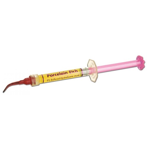 Шприц, в котором предлагается порцелайн-плавиковая кислота, снабжен специальной насадкой, обеспечивающей точность нанесения материала. После применения препарата рекомендуется нейтрализовать его и удалить стоматологическим пылесосом или слюноотсосом.